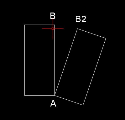 saya pengguna baru librecad, mohon petunjuk cara rotasi obyek dengan referensi obyek lain. misal seperti gambar, titk pusat rotasi ada di a, dan saya ingin merotasi obyek sebelah kanan agar b2 berimpit dengan b. terima kasih